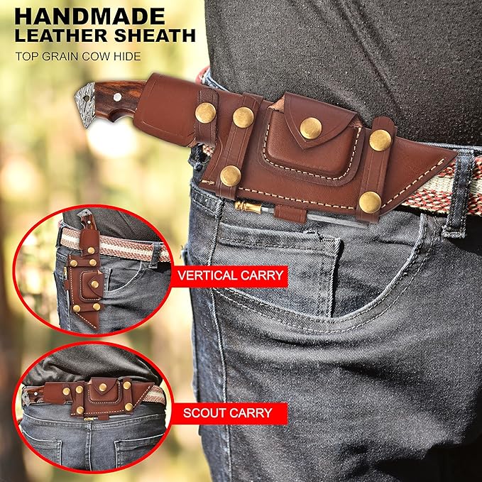 - SHEATH CARRY STYLE: - Our Bushcraft Knife can be carried in two different ways: 1-Right hand Front Cross draw. 2-Left hand for scout carry position.