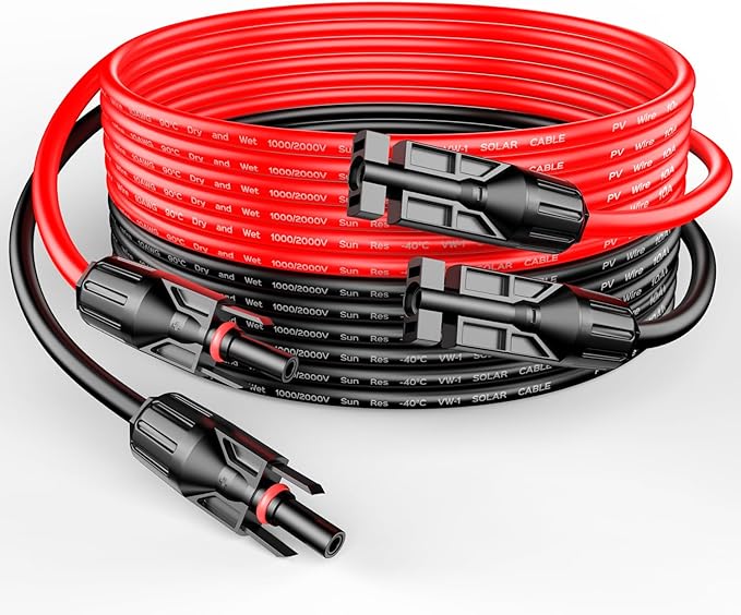 RICH SOLAR 10 Gauge 10AWG One Pair 10 Feet Red + 10 Feet Black Solar Panel Extension Cable Wire with Female and Male Connectors(10FT 10AWG)
