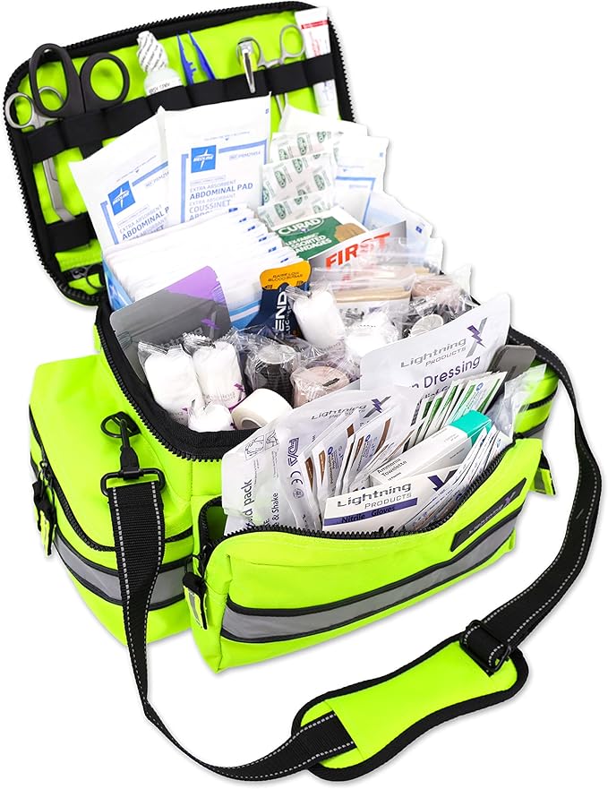Lightning X Products Lightning X Mid-Sized First Responder EMT Bag | LXMB25 Fully Stocked Aid Kit w/ 200+ BLS Supplies - Fluorescent Yellow