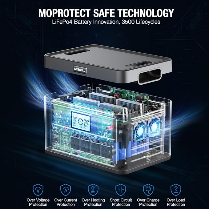 - Durable & Safer LiFePO4 Battery: Designed with a durable exterior shell with convenient handles, the 32130 LiFePo4 battery ensures the safety of our power station. Compared with a traditional lead-acid battery, it features better safety and a 3500+ super long life cycle. With the smart LCD screen, the real-time display shows current, voltage, power, temperature & charging status. Our generator is quiet and free of emissions when charging, it is your must-have for home and outdoors.