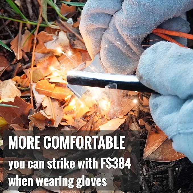 - 【15,000+ Strikes & Ultra-Portable】 Experience unparalleled value with our classic 3/8" x 4" ferro rod, built to deliver over 15,000 hot sparks for years of reliable use. At a mere 2.6oz, it's the compact, lightweight essential that fits perfectly in any pocket, ensuring you're always prepared to start a campfire or handle emergencies with ease.