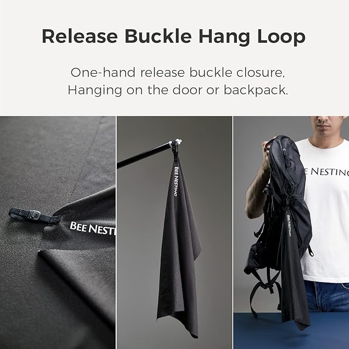 - RELEASE BUCKLE HANG LOOP - With an integrated release buckle closure that doubles as a hanging loop over the door, your backpack, or bottle. The large thin towel rolls up into a packable travel-friendly size. Perfect for anyone who travels light.
