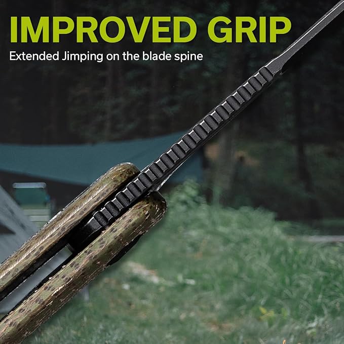- Improved Grip---It can provide a natural resting place for your thumb, allowing you to apply controlled pressure without straining your hand.Jimping allows you to maintain better control over the utility pocketknife's movement.