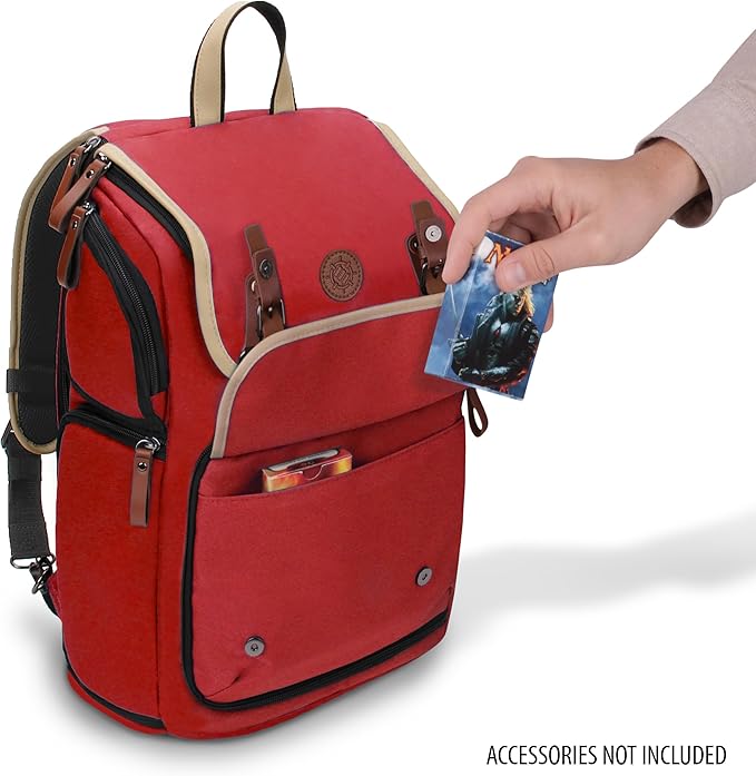 ENHANCE Designer Edition TCG Backpack - MTG Deck Bag Card Binder Space, TCG Deck Box Storage, MTG Playmat Holder - Card Storage Compatible with Magic the Gathering, Pokemon, Lorcana (Canvas Red)