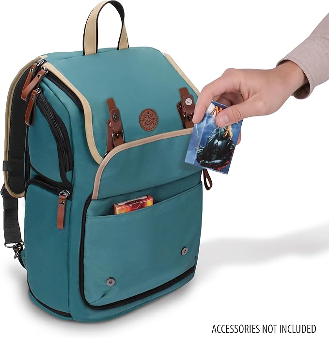 - PORTABLE AND STYLISH BACKPACK with side access opening , rain cover , luggage handle slot plus room for all your MTG cards , Card Deck box , Pokemon Card Box , YuGiOh Deck Box , Graded Card and More