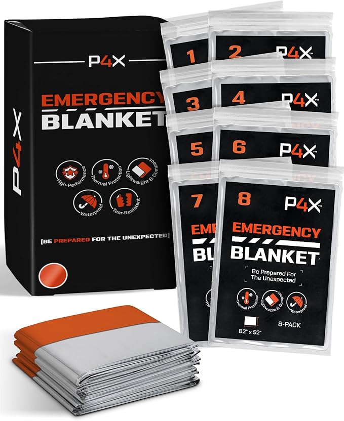 PREPARED4X Mylar Blankets 8 Pack - Waterproof Emergency Blanket - Rip and Tear Resistant Survivalist Gear - Emergency Thermal Blanket for Outdoor Survival