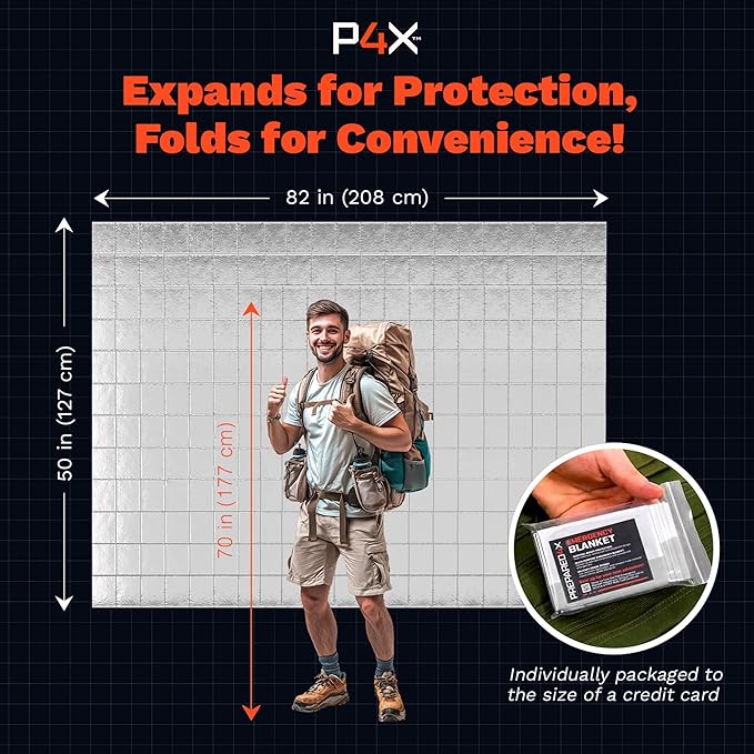 - Emergency Blankets for Survival: Our 82" x 50" emergency space blanket is a vital addition to your survival gear. These mylar space blanket will help retain up to 90% of body heat, ideal for emergency situations.