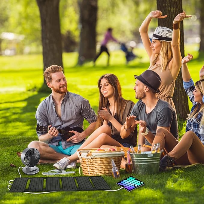 - 【40W Solar Panel Charger】The 40 Watts solar panel with 3 different ports of quick charging USB-A QC3.0 18w(Max) , USB PD 2.0 15w(Max) and DC 40W( Max) ports to directly connect and charge smartphones, tablets, headphones, power bank, speakers, camera, meet almost all 5V and USB devices.
