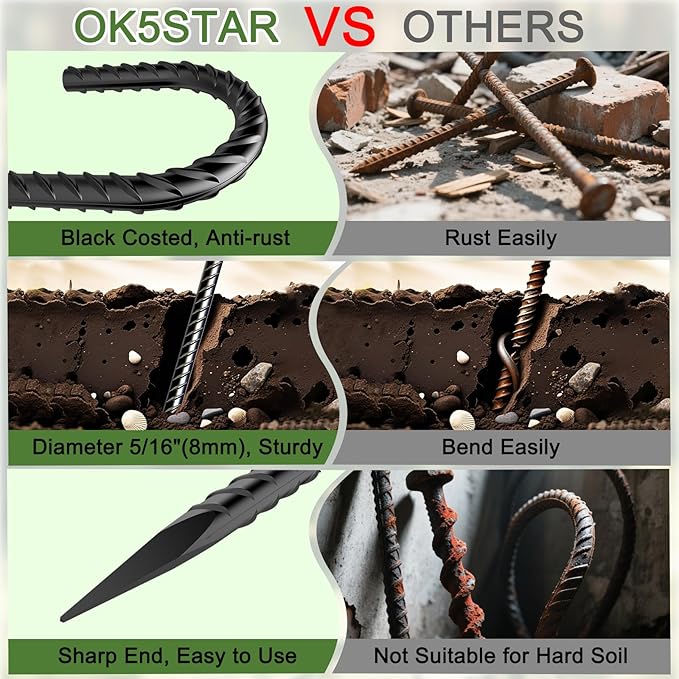 - Easy to Use: Chisel point end makes the j hook ground stakes easy insert into the ground and save effort, easy to hammer down, suitable for all kinds of soil