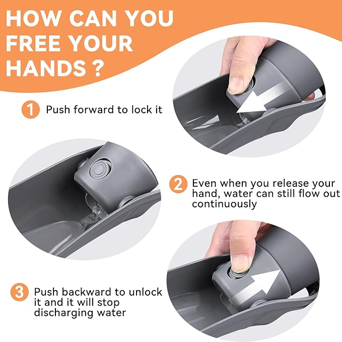 - Easy to Use & Recyclable Water: Quickly turn over the leaf-shaped dog water bowl, then press the button to allow water flow and quench your doggie's thirst. Press the button and push it forward to lock it, and the water will flow out continuously. After drinking, press the button and tilt back, excess water will flow back into the bottle. This helps reduce water waste.