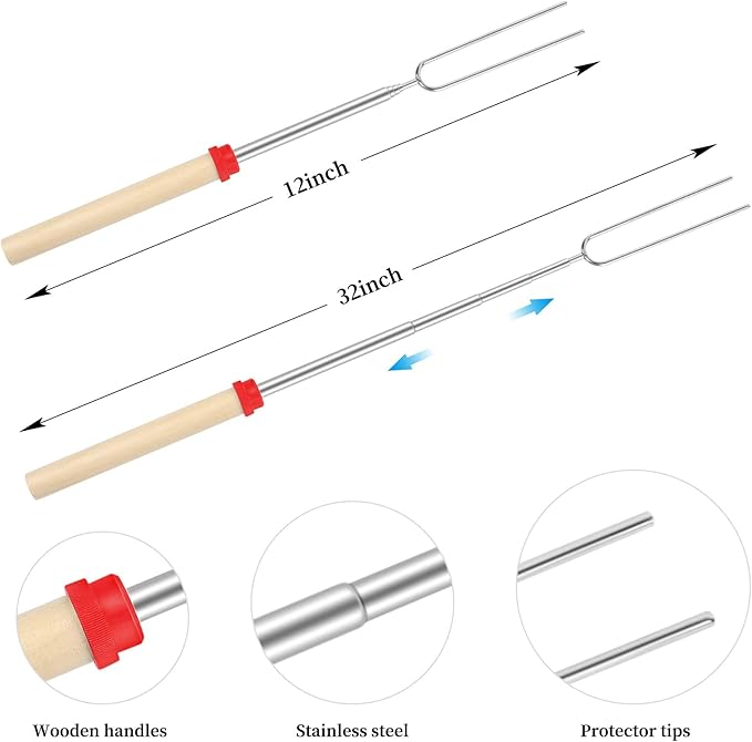- What's You Will Get- Package included: Cutting Board * 1, Chef's Knife * 1, Scissors * 1, Pepper Shaker * 1, Bread Clip * 1, Can Opener* 1, Soup Spoon * 1, Frying Spatula * 1, Extendable BBQ Forks * 2, Stainless Steel Fork for meats * 1, Oil Bottle*1.