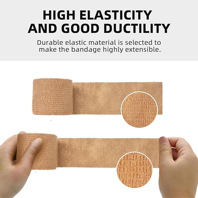 - What You Get - 12 rolls of self-adhesive beige bandages, each roll is 3" x 5 yards / 7.5 cm x 4.5 meters, packed individually. The 12 rolls pack can meet your daily needs, and the price of a single roll is lower and more economical.