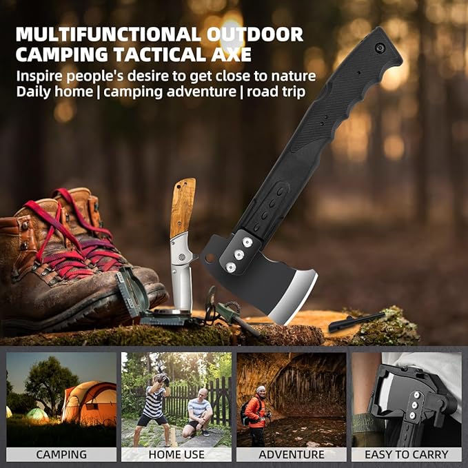- 【Survival Hatchet】The perfect exploration and camping axe, this multitool is designed to chop, cut, saw, and hammer based on your unique outdoor needs.
