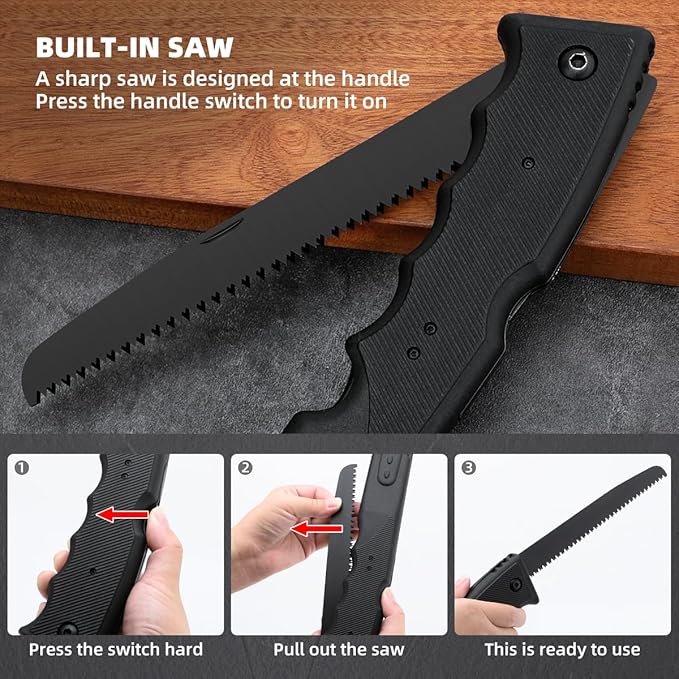 - 【Ergonomic Handle】The handle on the throwing axe and wood saw is textured and ergonomically shaped to comfortably fit the user's hand. The splitting axe is lightweight enough to be used for long periods of time without causing hand fatigue or discomfort.