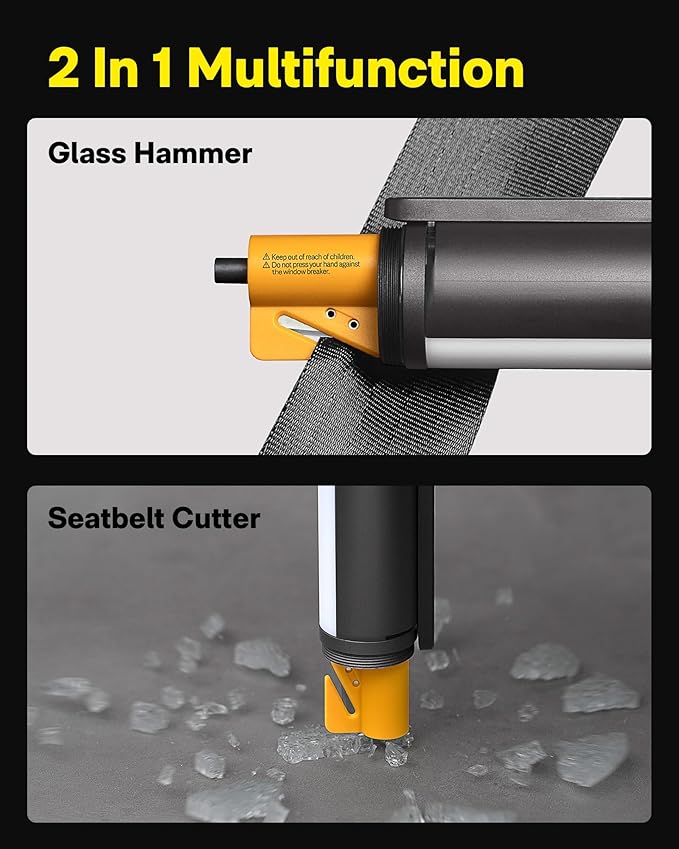 - SEATBELT CUTTER & WINDOW BREAKER: The HOTO emergency flashlight power is equipped with a safety belt cutting knife with an inverted buckle design, which is designed to prevent accidental cuts. The pop-up window breaker, the push-type structure, press firmly perpendicular to the glass window, and the hidden striker pops out, which is safer and labor-saving, keeping you safe from unintentional harm. IP54 water resistance protects against everyday splashes