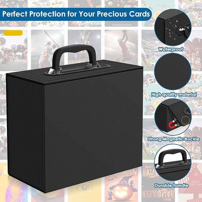 - Magnetic and Handle Design: Our magnetic design is very powerful even if you shake the card case hard it won't open and the trading cards won't fall out. Also, you are easy to access and take out you precious cards when you need. Our handle design makes it easy to carry this card case around and share your collection with your friends.
