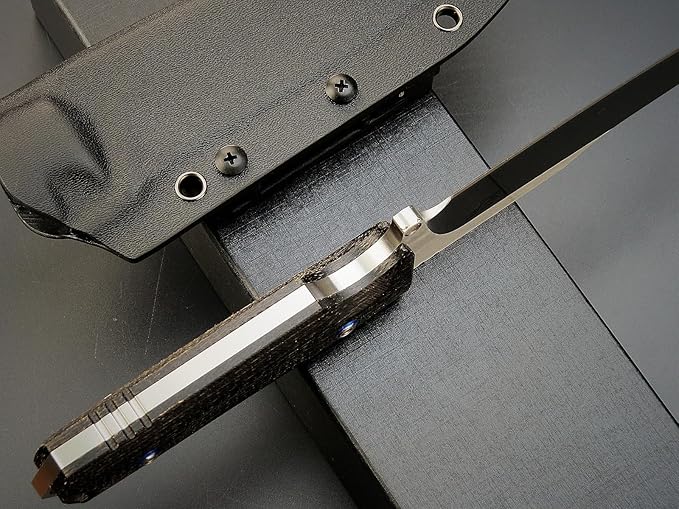 - Super Nice Ergo Micarta Handle:Ergonomical design handle shape and nice thick full tang, provides a great balance and comfortable ergonomics, anti-skid Micarta handle scales can absorb sweat and water, it's suitable for all weather condition , the steel surrounding the scales is rounded for comfort,there isn't any sharp edge and rough corner, the screw hardware is also exquisitly machined.with a deep finger choil and finger guard can ensure a safety using in heavy works.