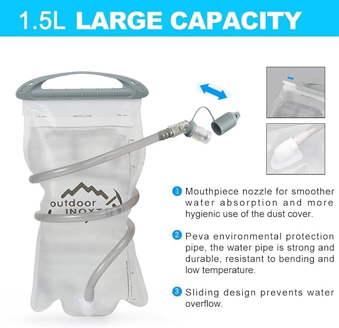 • ❤ 【Ergonomic and comfortable design】 INOXTO Hiking Backpack Water Bladder Vest Kit aligns your back while gently protecting your muscles. The ventilated mesh cover keeps your back cool by maintaining air circulation, preventing discomfort due to accumulated heat, and providing excellent air circulation and breathability.