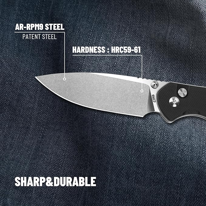 - 【SHARP AR-RPM9 STEEL BLADE】The blade of the knife is made from durable AR-RPM9 steel, with a hardness of HRC59-61, making it perfect for daily use. It also has high corrosion resistance and exceptional edge retention.