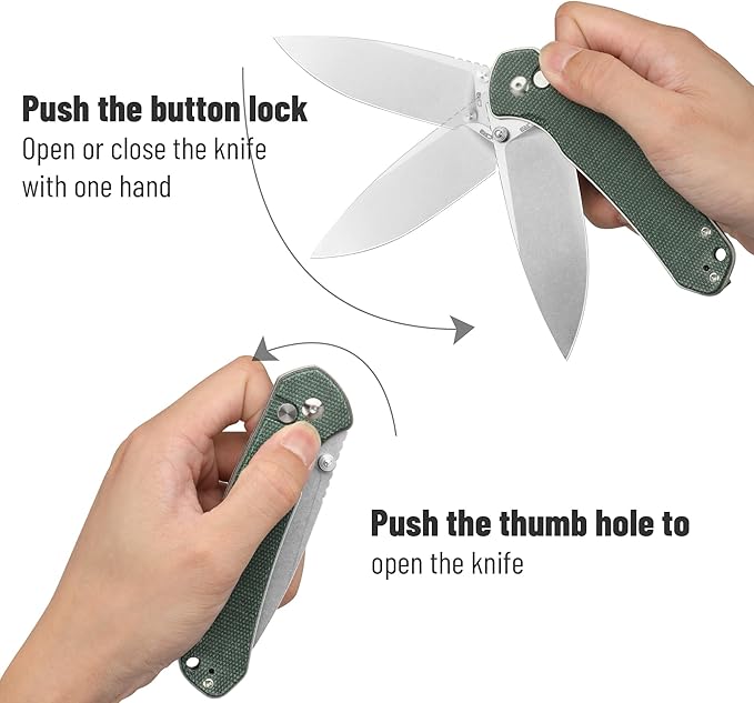 - 【AMBIDEXTROUS OPENING】Our knife features a dual-release blade design that can be quickly and safely opened using either the button lock or thumb stud.This feature makes it easy to open the knife with either hand and provides convenience for left-handed users as well.