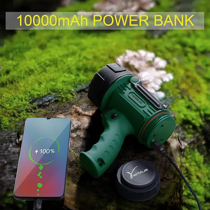 YIERBLUE Rechargeable Spotlight Flashlight, 1000,000 High Lumen LED Spotlight with Ultra-Long Running, IP67Waterproof Spot Lights with Red Lens(Large)