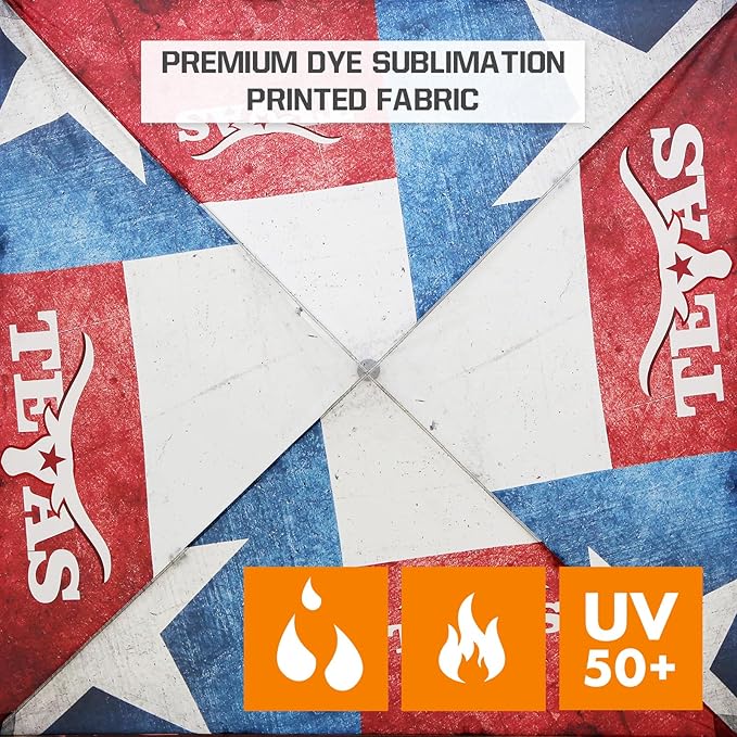 - SUPERIOR QUALITY: UPF 50+ UV protection, water resistance, CPAI-84 flame resistance, 150D oxford fabric canopy top. Frame is powder-coated, rust-resistant, high-grade engineered steel, with hardened M5 bolts and nylon connection hardware for maximum durability
