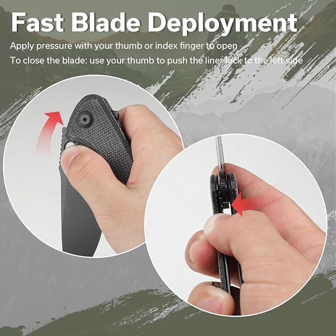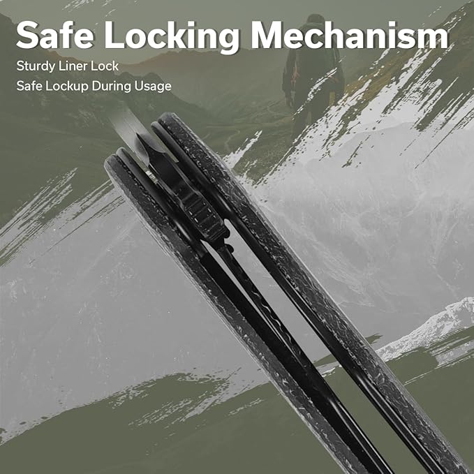 - [Confidence in Secure Locking] Folding knife proudly features a stalwart, trustworthy locking mechanism. Enhanced by a caged ceramic ball bearing pivot assembly, the liner lock mechanism ensures both secure usage and effortless deployment.