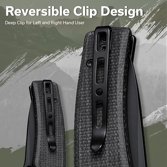- [Convenient Portability] Featuring a spectrum of colors, the handle integrates a reversible pocket clip for versatile carrying. The camping knife with a reversible deep carry clip for effortless tip-up left or right-hand use.