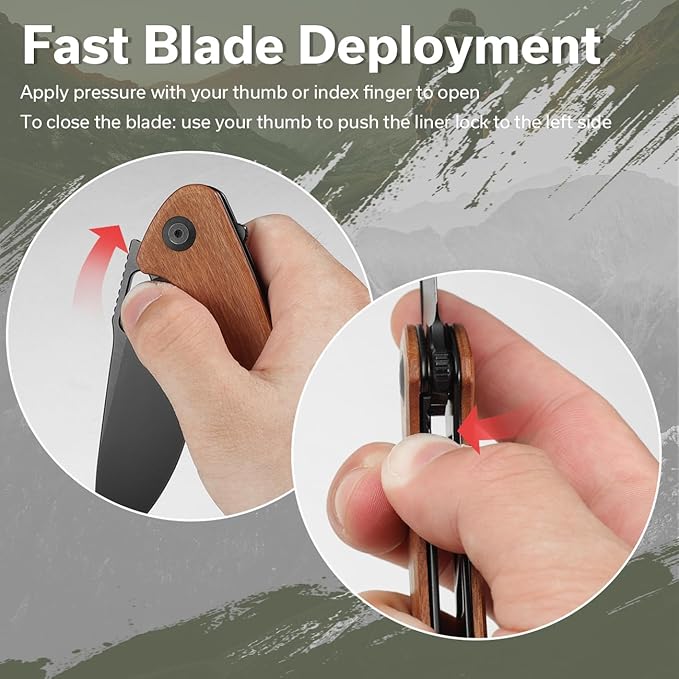 - [Confidence in Secure Locking] Folding knife proudly features a stalwart, trustworthy locking mechanism. Enhanced by a caged ceramic ball bearing pivot assembly, the liner lock mechanism ensures both secure usage and effortless deployment.