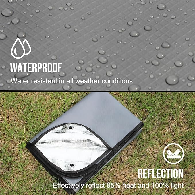 - âşď¸ăReusable and DurableăRugged 4 Layers including PE, Polyester Mesh and Aluminum Foil. Suitable for Many Situations, including Raincoat, Camping, Hiking, Mountainning, Snowfield and Heavy Duty. Also Can be Used as Car Protection, Sunshine Shelter, Pets Shelter, SOS Signal, Solar Heater for Many Times.