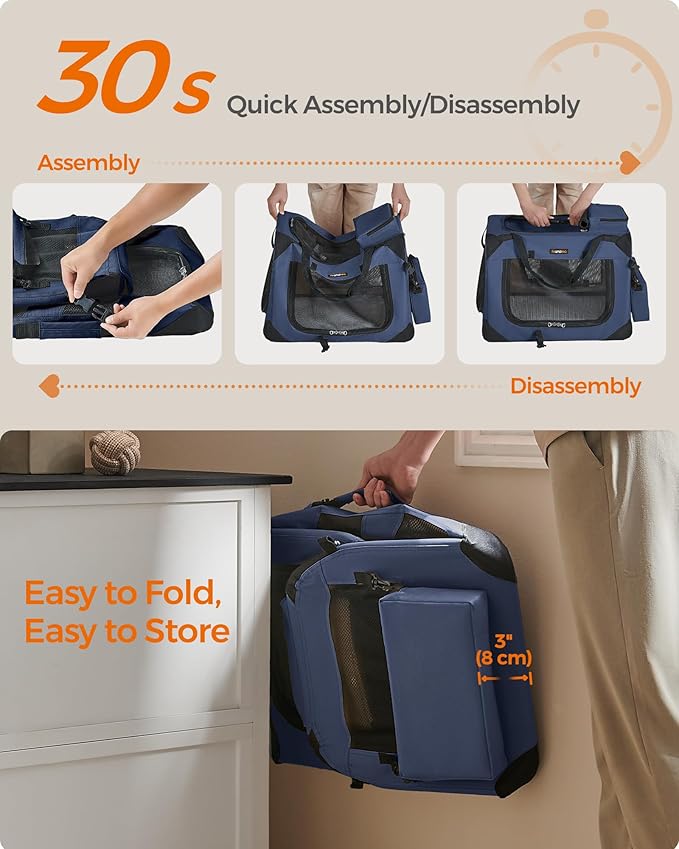 Feandrea 24 Inches Collapsible Soft Dog Crate, Portable Travel Dog Crate for Indoor and Outdoor Use, Dog Carrier Kennel with Safety Zippers, for Living Room, Car, Travelling, Campin, Dark Blue UPDC60Z