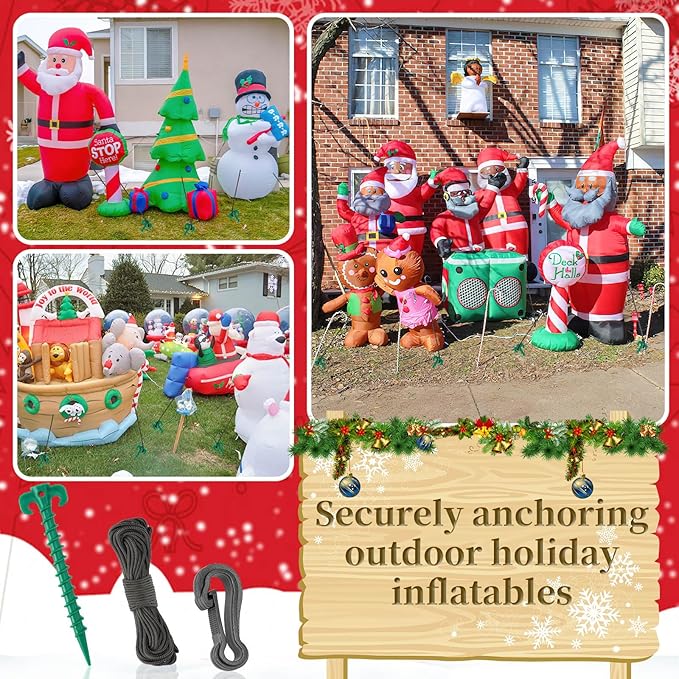 AUGSUN 27 Pieces Plastic Inflatable Stakes Set, Include Tent Stakes, Tethers Ropes and Hooks Heavy Duty Garden Yard Stakes for Christmas Outdoor Decorations (Green)