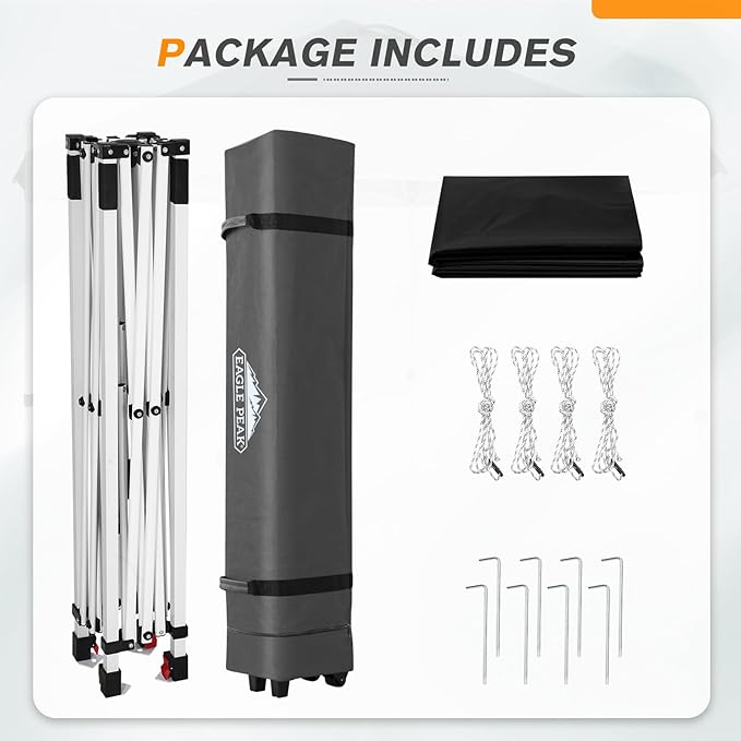 - EAGLE PEAK PROMISE: EAGLE PEAK offers 1-year limited after sale protection from the date of purchase. Unlike many other canopy sellers, EAGLE PEAK offers this for our frames, tops and bags! Please contact our professional service team with any questions