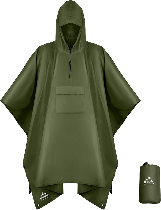 • Occasion:One size fits most people.The Coralrain Rain Poncho Adult is designed to be moisture and water resistant to keep you dry during any type of outdoor activity such as men's hunting gear, camping, hiking, riding, cycling, climbing, picnic, walking, traveling,walking the dog, watching ball games,also suitable for daily wear. Coralrain raincoat is a must have for men's lifestyle.