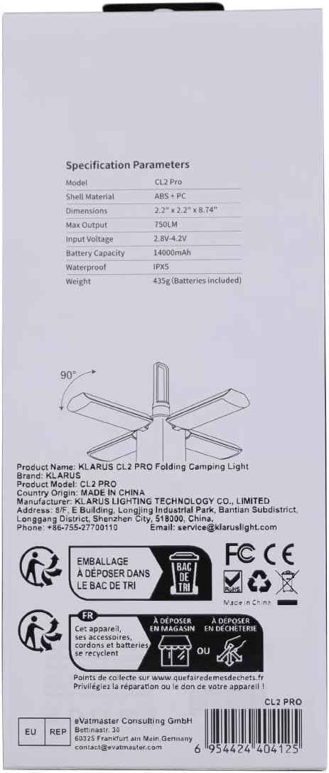 KLARUS CL2 Rechargeable Camping Lantern, 750LM 7 Light Modes Waterproof Foldable Tent Light with Power Supply for Emergency, Camping, Beach, Travel, Power Outages