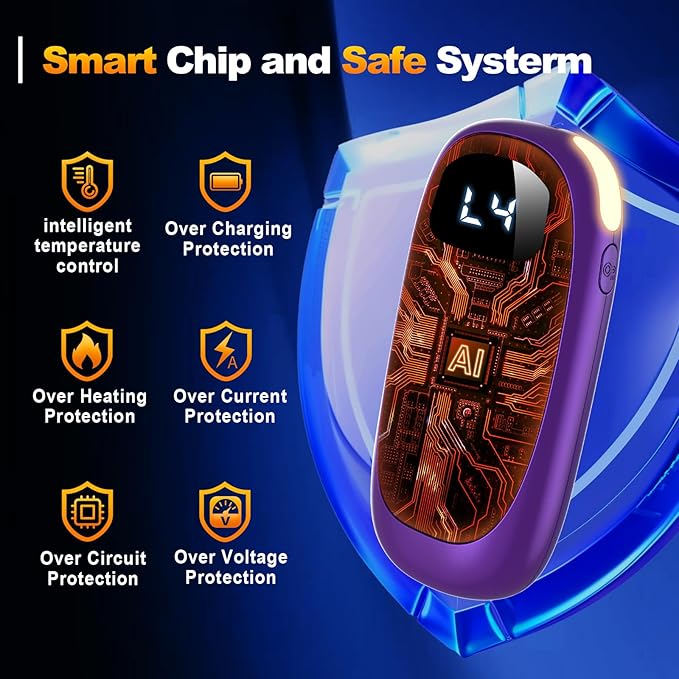- 【LED Display】Built-in LED digital display, shows the remaining power or the temperature level. L1-L4 is single-sided heating, H1-H4 is dual-sided heating. This electronic hand warmers rechargeable with the ability to see the remaining battery power, you can plan ahead and make sure you're never without warmth when you need it.