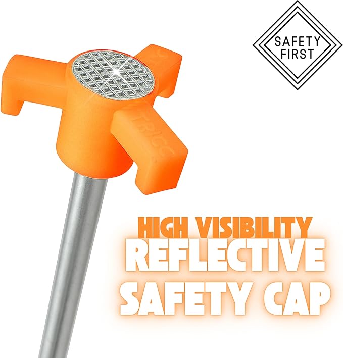 Tricc Unbreakable Heavy Duty Steel Tent/Canopy Stakes, Galvanized Non-Rust 10" Three Pegged Solid, Sturdy Stakes for Outdoor Trips, Camping, Hiking & Gardening. 4 Colors Made in The USA (Orange)