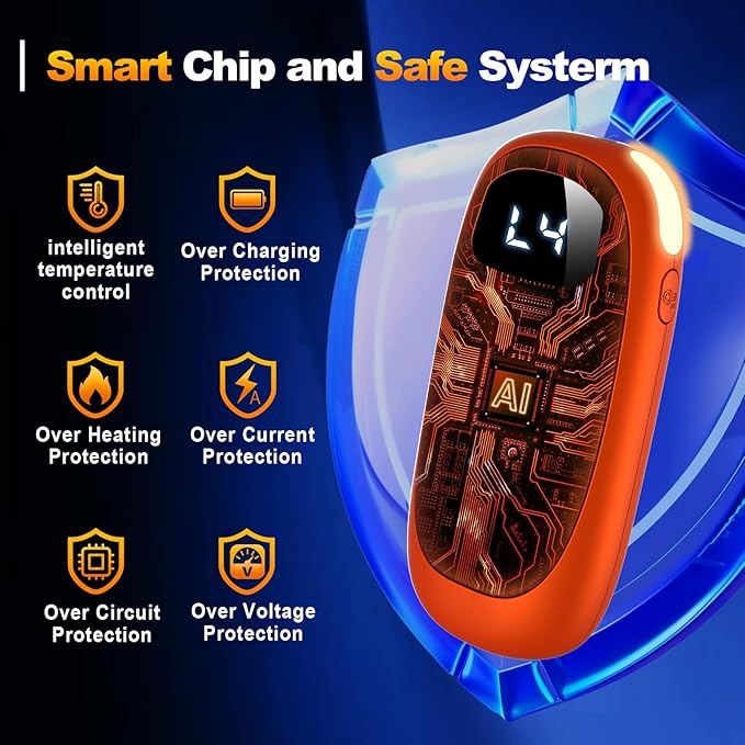 - 【Compact & Portable】Our electric hand warmers are lightweight design and compact structure, highly portable. They won't weigh you down or take up much space in your bag or pocket. Perfectly shaped to fit snugly in your palm by their ergonomic design, providing a comfortable grip that won't strain your hand.