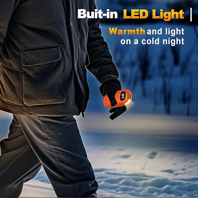 - 【3 IN 1 Functionality】Rechargeable hand warmer, Power bank, and LED emergency light. With a generous total capacity of 14,000mAh, they can provide a significant charge to your smartphones, tablets, or any other USB-powered device. The LED light is incredibly useful in unexpected situations or when you find yourself in a dark place.