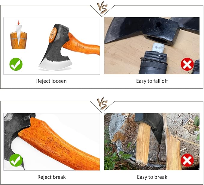 - STURDY AND DURABLE: Our bushcraft axe feature handles made from superior beech wood that are strong and long-lasting.We've reinforced the handle of our camping axe with a sturdy steel wedge to prevent the head from becoming loose