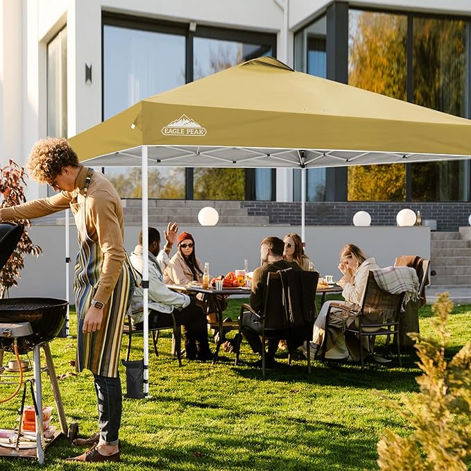 EAGLE PEAK Pop Up Canopy Tent with Wheeled Carry Bag, 8 Stakes, 4 Ropes, 4 Weight Bags, Easy Set Up Tent Canopy, 12x12 ft, 144sqft of Shade, Beige