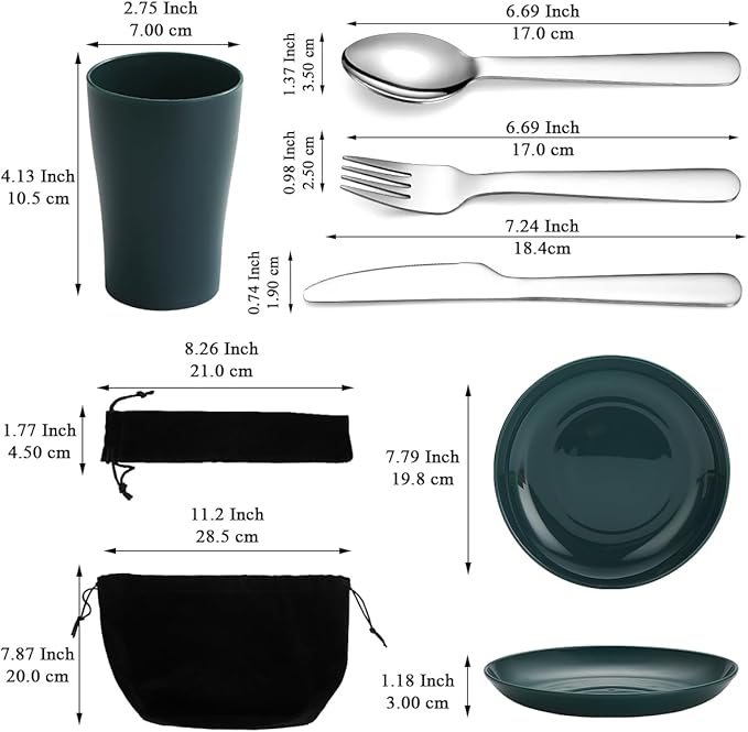 - GREAT VALUE SET: You will get a beautiful set of cutlery, the set includes 1 large plate, 1 large capacity cup and 1 set of stainless steel cutlery, the cutlery includes knife, fork and spoon.