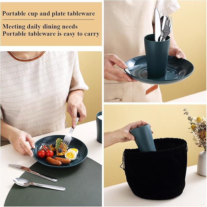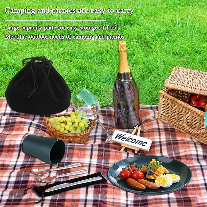 - HIGH QUALITY: The plates and cups of this camping set are made of pp material, BPA free. They are lightweight, unbreakable and sturdy, the stainless steel cutlery is made of high quality stainless steel, sturdy and durable.