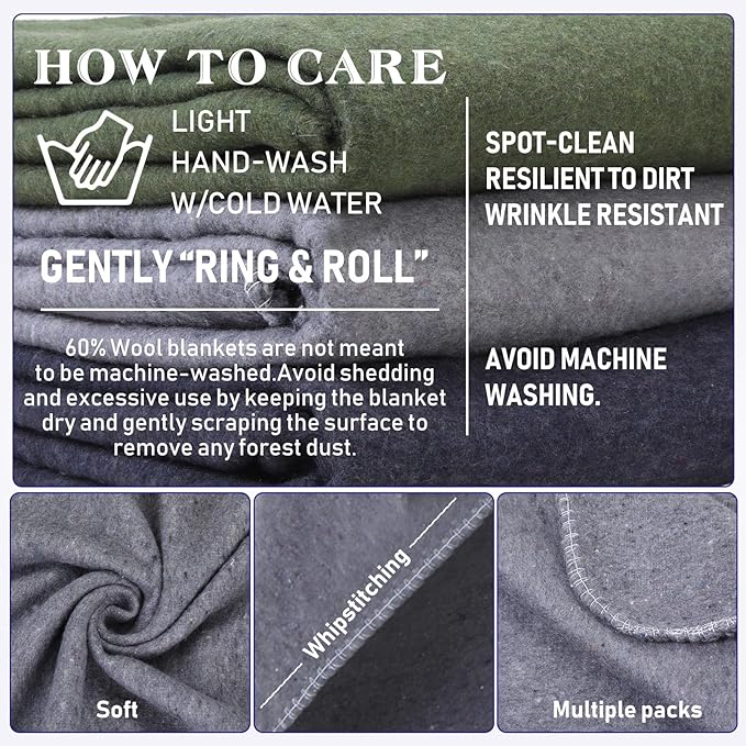 - Nice Blend of Comfort and Quality: experience the ideal blend of comfort, quality, and warmth with our meticulously crafted camping blankets; Each blanket is made from a quality polyester cotton wool blend, ensuring excellent warmth during chilling winters; Designed with customer needs in mind, these military blankets are expertly engineered to provide unrivalled comfort and durability, whether you're using them for outdoor adventures or just relaxing at home