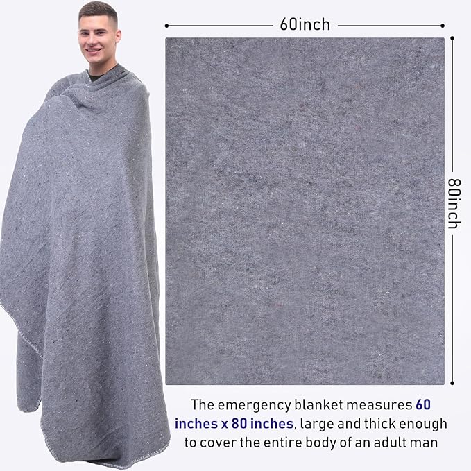 Preboun 6 Pcs First Aid Fire Retardant Blanket Military Blanket 60" x 80" Survival Blanket for Camping Emergency and Everyday Use Fire Retardant Extra Thick and Warm Outdoor Bed Blankets (Light Gray)