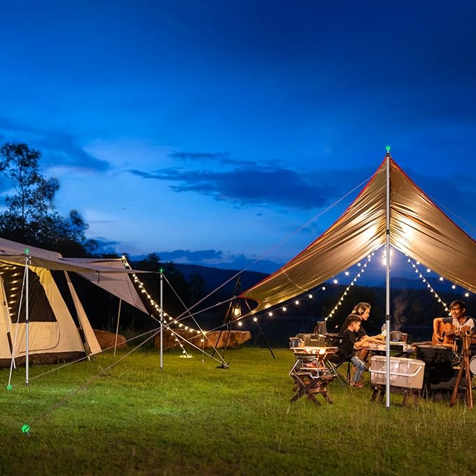 - 【Non-slip & Luminous】The metal tent tip with a removable newest luminous tip cover, glow in the dark, made of TPR insulation material, can prevent lightning strike. It can hold up the tent space when supporting the center of the tarp, effectively eliminating punctures while holding the tarp firmly in place to prevent collapse.