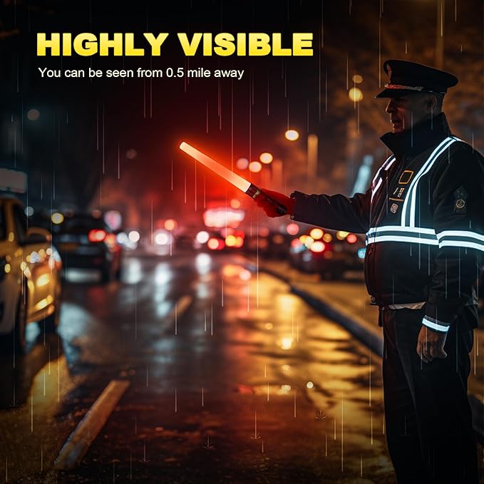 - WIDE USE - This traffic baton have multiple uses, such as for Traffic Control, Fire Department, Parking Attendant, Airport Command, emergency alerts, and walking the dog at night.