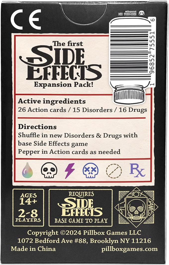 - Spice up your game by shuffling in these additional Action cards, Disorders, and Drugs.