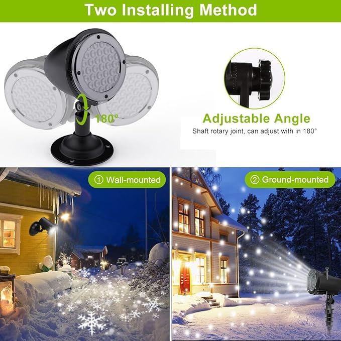 - 【Specially Designed For Indoor and Outdoor】: With ultra strong IP65 waterproof grade, Snowfall light can be available to family, club, ballroom and concert etc. LED Lights Projector make a amazing backdrop with flying snowflakes for Christmas, Wedding, Party, Birthday, Thanksgiving, New Year, etc. to delight your kids, lovers or friends