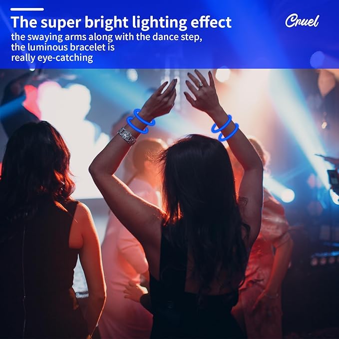 - Party Carnival: The glow stick glow effect can be up to 6-8 hours, enough time for us to complete a light party at night! The super bright lighting effect, the swaying arms along with the dance step, the luminous bracelet is really eye-catching.